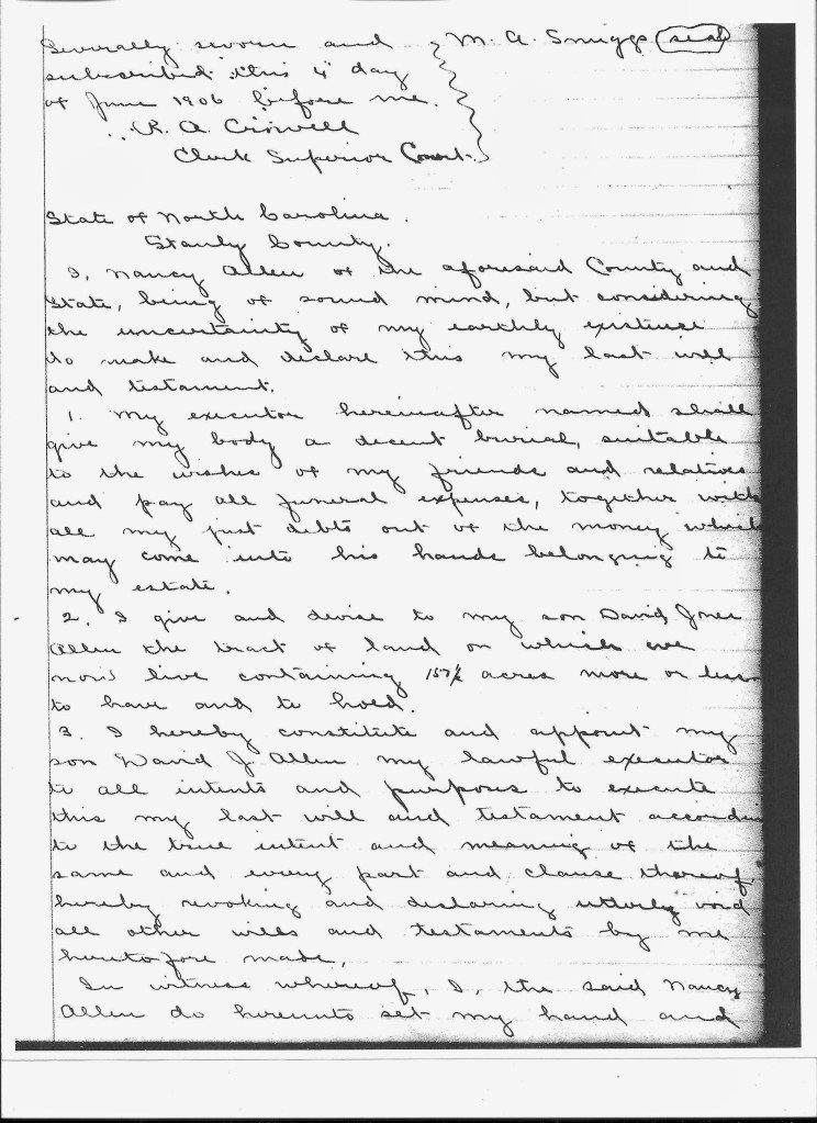 Today, I’m transcribing the will of Nancy McSwain, my 3rd great-grandmother via:
