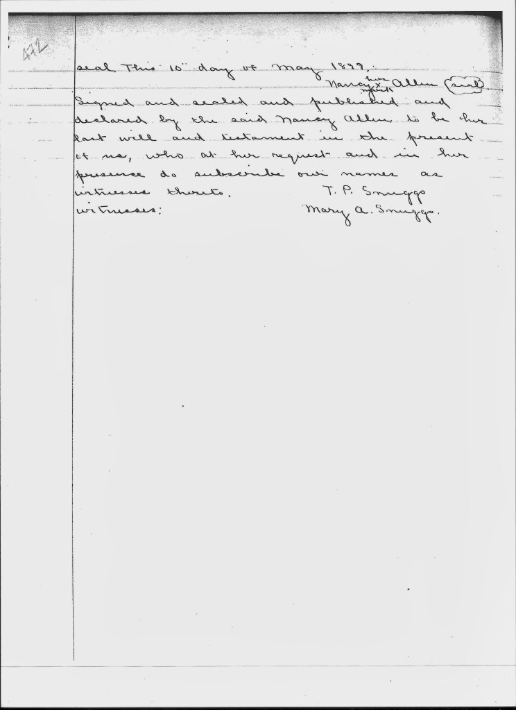 In witness whereof, I, the said Nancy Allen do hereunto set my hand and