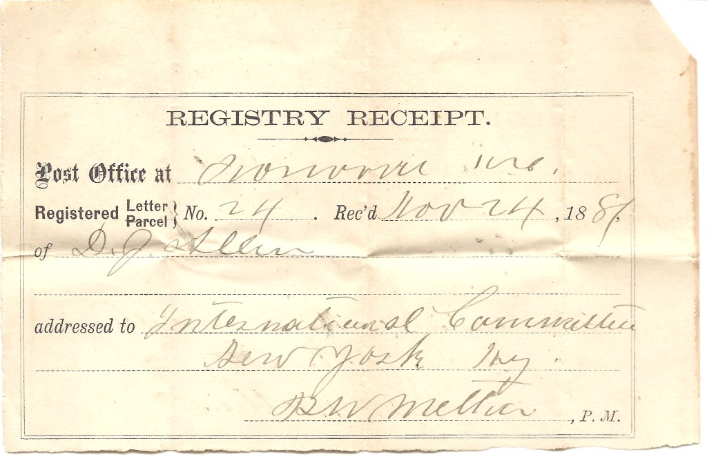 Registered Letter No 24, Rec’d Nov 24, 1881