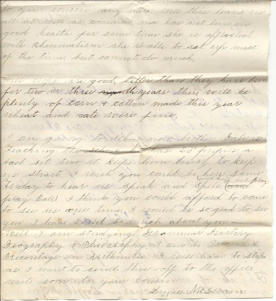 I haven’t found much on the McSwain family of Arkansas and how they got there. I believe Lizzie may be Martha Elizabeth McSwain who married a Charles E. Kendall and lived her life in Jefferson County, Arkansas. If I’ve found the right person, she’s the daughter of M. & Lucy McSwain. I haven’t researched the McSwain line at all and hope to find some of the McSwain family information in these Allen Papers as I continue moving through them.