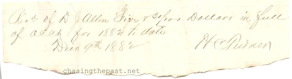 Rec’d of DJ Allen Five + 30/100 Dollars in full of acct for 1882 to date