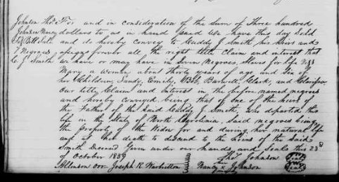 By 1839, James C Smith is dead. We know this because, Thomas and Nancy Johnson sell their interest in slaves being the property of the widow of the father of the said Cuddy J Smith.