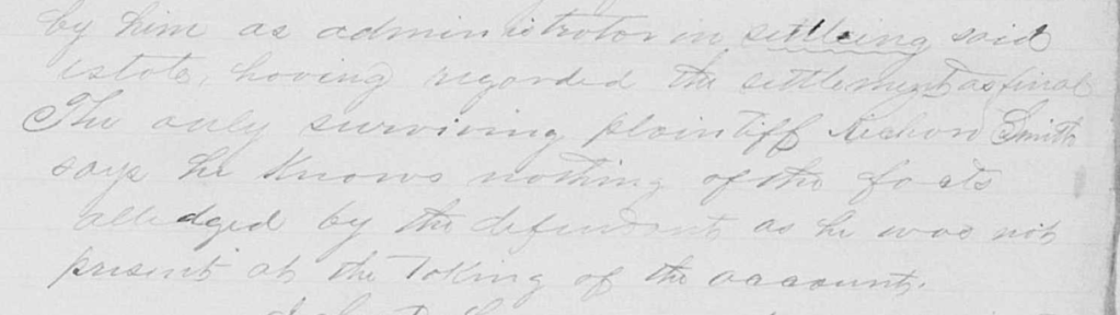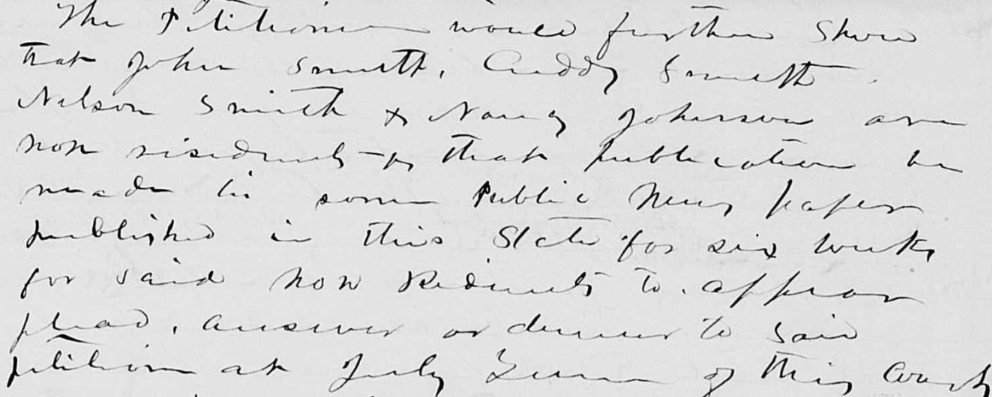 As a sidebar, I am a bit confused about two things. First, why are Green’s siblings his only remaining heirs? He had at least one daughter, Caroline, as noted in a deed from 1849. Second, the petition of 1859 to settle Green’s probate switches between Richmond and Richard. I can find no evidence of a connection between Green Smith and a family member named Richard. It does name, without deviation, Curtis as also being a brother. This name is also unfamiliar to me, as I have found no evidence of a Curtis Smith being connected to Green. I feel Curtis is supposed to be Cuddy or Curly as I’ve seen Cuddy J referred to. Why is Green’s sister, Nancy, not a part of this petition? She is still living in 1859.
