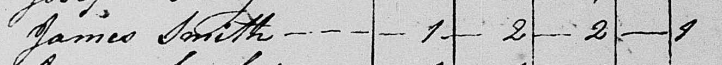 - “United States Census, 1800”, database with images, FamilySearch (https://www.familysearch.org/ark:/61903/1:1:XHR7-1D7 : Sat Mar 09 01:11:11 UTC 2024), Entry for James Smith, 1800. ↩︎